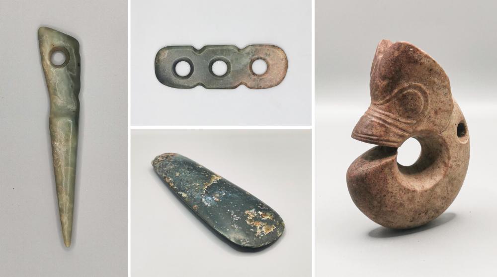 河北宣化郑家沟遗址1号积石冢出土的部分玉器(拼版照片)。