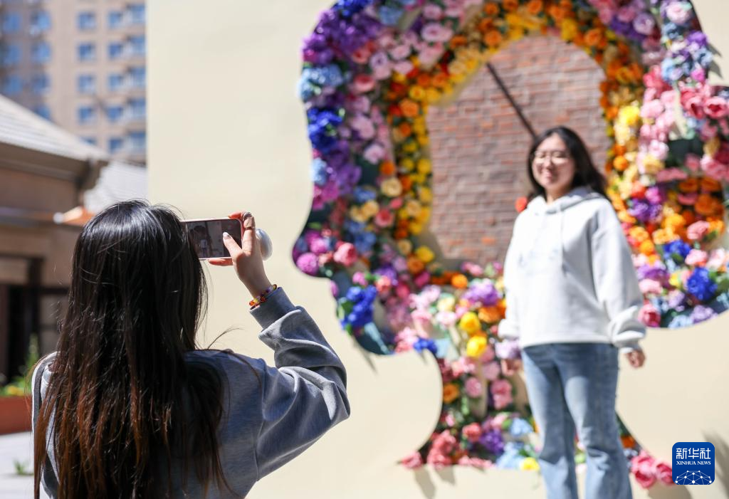 4月29日,市民在吉林省长春市商埠地历史文化街区打卡拍照。