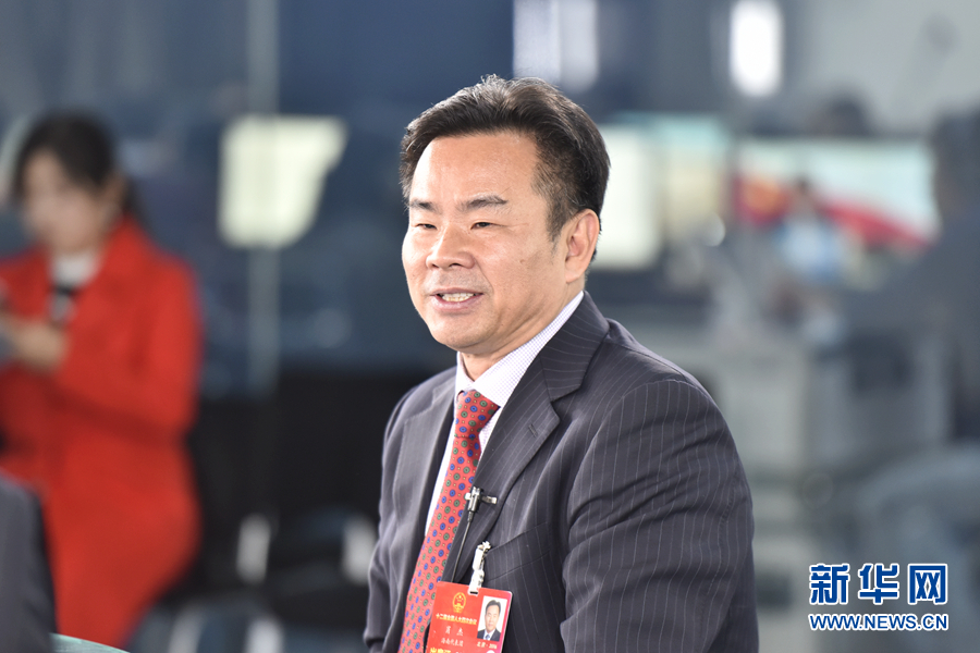 2016年3月13日,全國人大代表、海南省三沙市委書記、市政府市長肖杰做客新華網(wǎng)兩會訪談直播間。圖為肖杰。新華網(wǎng) 郭小天 攝