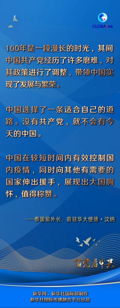 新華社曼谷5月29日電 “100年是一段漫長的時光,其間中國共產(chǎn)黨經(jīng)歷了許多磨難,對其政策進(jìn)行了調(diào)整,帶領(lǐng)中國實現(xiàn)了發(fā)展與繁榮。”泰國前外長、前駐華大使德·汶納日前在曼谷接受新華社專訪時說。