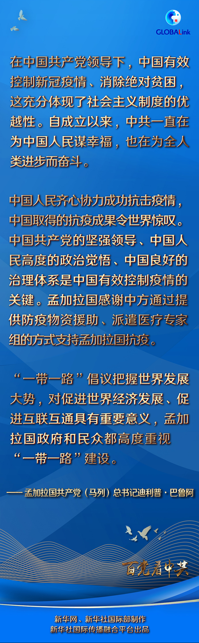 在巴魯阿看來,中共一直在為中國人民謀幸福,也在為全人類進步而奮斗,為增進人類福祉作出巨大貢獻。他說,“一帶一路”倡議把握世界發展大勢,對促進世界經濟發展、促進互聯互通具有重要意義,孟加拉國政府和民眾都高度重視“一帶一路”建設。